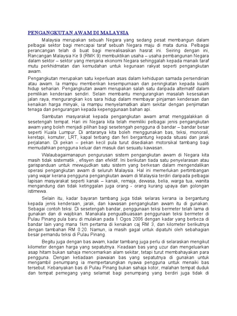 Masalah Pengangkutan Awam Di Negara Kita Pdf